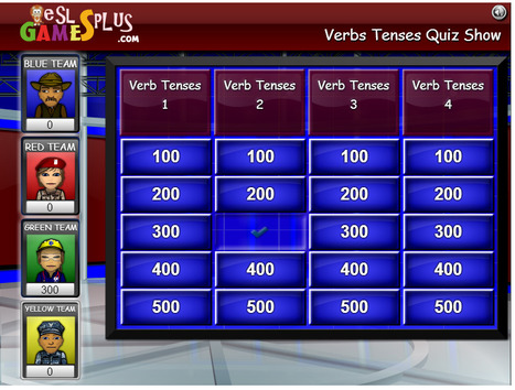 Game: Verb tenses. Jeopardy (6th)